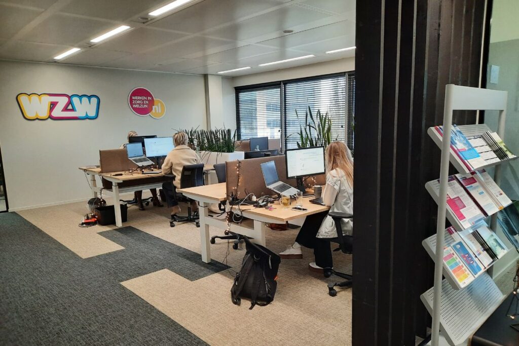 Het open kantoor sluit goed aan bij de manier van werken binnen WZW. Pia: “Omdat we een netwerkorganisatie zijn, is verbinding heel belangrijk. Ook binnen het team. Dit kantoor helpt ons om in contact te blijven. Iedereen weet goed waar de ander mee bezig is.”
